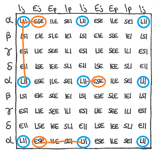 A theory of mine, to illustrate the possible variation of psychological comfort/discomfort within a specified intertype relation.