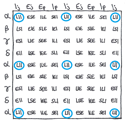 So doing this for each of the intertype relations gives the following numbers: