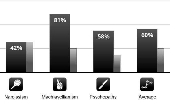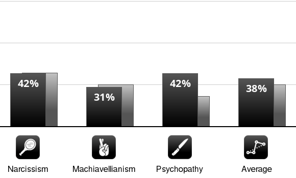 This test has been making its rounds. It measures traits of narcissism, machiavellianism, and psychopathy compared to the population average.